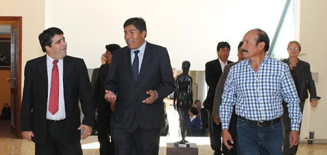 En las últimas horas se efectuó la primera de las jornadas previstas en el marco del encuentro entre una delegación conformada por seis Alcaldes, un Consultor de Cooperación Internacional, un Empresario y un Regido de Municipalidad, todos referentes de distintos Distritos Provinciales del Departamento de Puno de la Republica del Perú y el Intendente Departamental Alfredo Villalba, la Secretaria General Doctora Teresa Arrillaga, Directores, Coordinadores y Asesores que conforman el equipo del Ejecutivo Comunal. Cabe recordar que la representación Incaica llega a nuestro medio para conocer todo lo relacionado a la producción agropecuaria, interiorizarse con los temas culturales, deportivos y comerciales del departamento y proponiendo intercambios de gestión en cualquiera de los ámbitos mencionados.