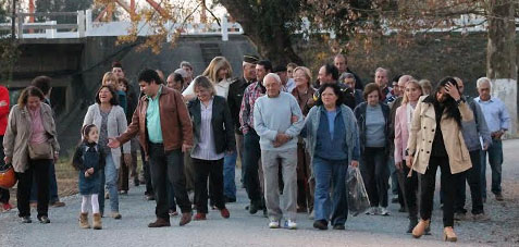 Seguidamente, juntos; autoridades, Arquitectos, Ingenieros, Capataces, funcionarios y vecinos emprendieron el recorrido por los 12.700 metros cuadrados de bitumen que conforman la “nueva senda inferior” de una Rambla muy iluminada por focos instalados en las aproximadamente 80 columnas. A paso lento, la gente transitaba y reconocía el excelente trabajo realizado por capataces y funcionarios municipales. Al respecto, el capataz Walter Plada comento que para la obra se utilizaron 1992 viajes de piedras, 600 caños 170 viajes de tosca fina y aproximadamente 3180 metros cúbicos de tosca gruesa (números estimativos).