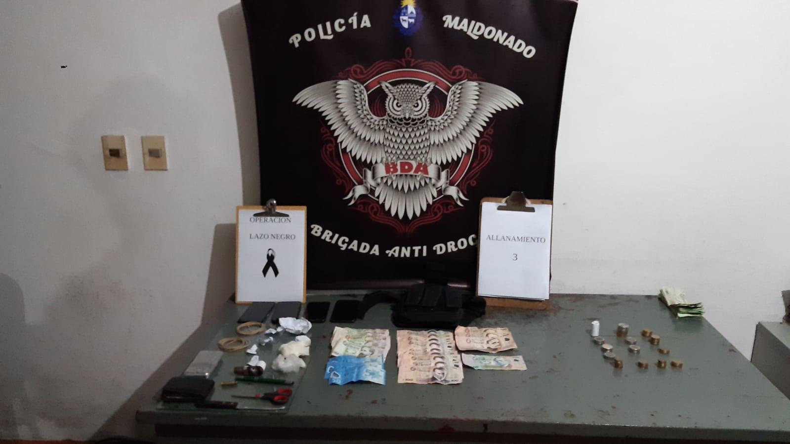 En horas de la tarde del 5 de agosto de 2020 la fuerza de tareas constituida por personal de la Brigada Departamental Antidrogas y personal de los Áreas Operacionales II, III y IV de la Jefatura de Policía de Maldonado realizaron tres allanamientos en simultáneo en el Barrio Maldonado Nuevo de esta ciudad, resultando con la detención de siete personas y la incautación de aproximadamente 300 gramos de sustancia blanca, presumiblemente cocaína, 7 gramos de sustancia vegetal, 4 balanzas de precisión, tres cartuchos vivos calibre 38 y uno de calibre 32, además de la suma de $U52.683 pesos uruguayos.