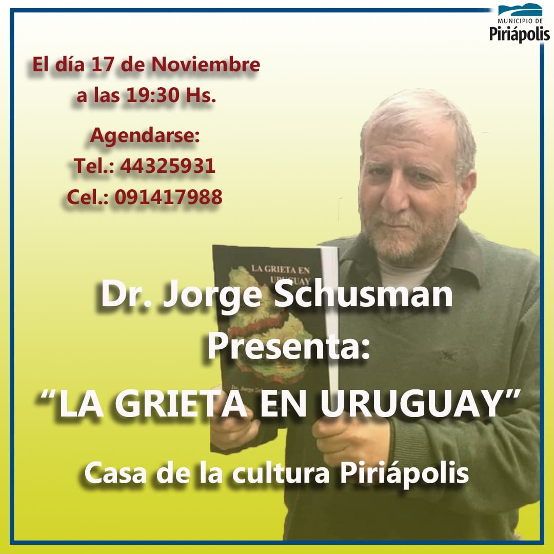 El doctor Jorge Schusman presenta el libro "La Grieta en el Uruguay" en la Casa de la Cultura de Piriápolis.